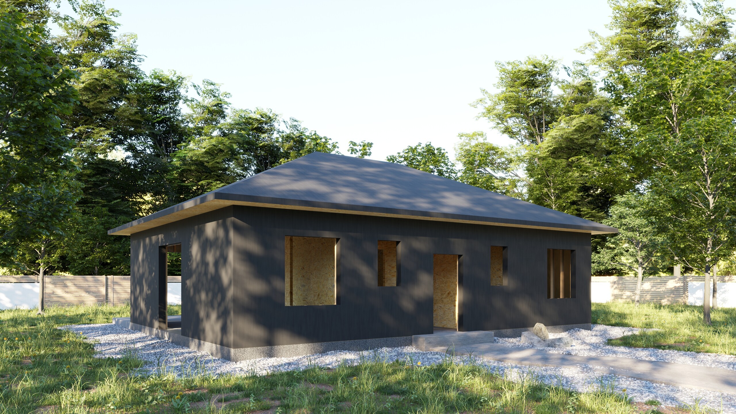 Trzy warianty domu Light Wood wraz z zakresem: